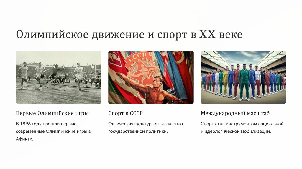 Олимпийское движение и спорт в XX векеПервые Олимпийские игры