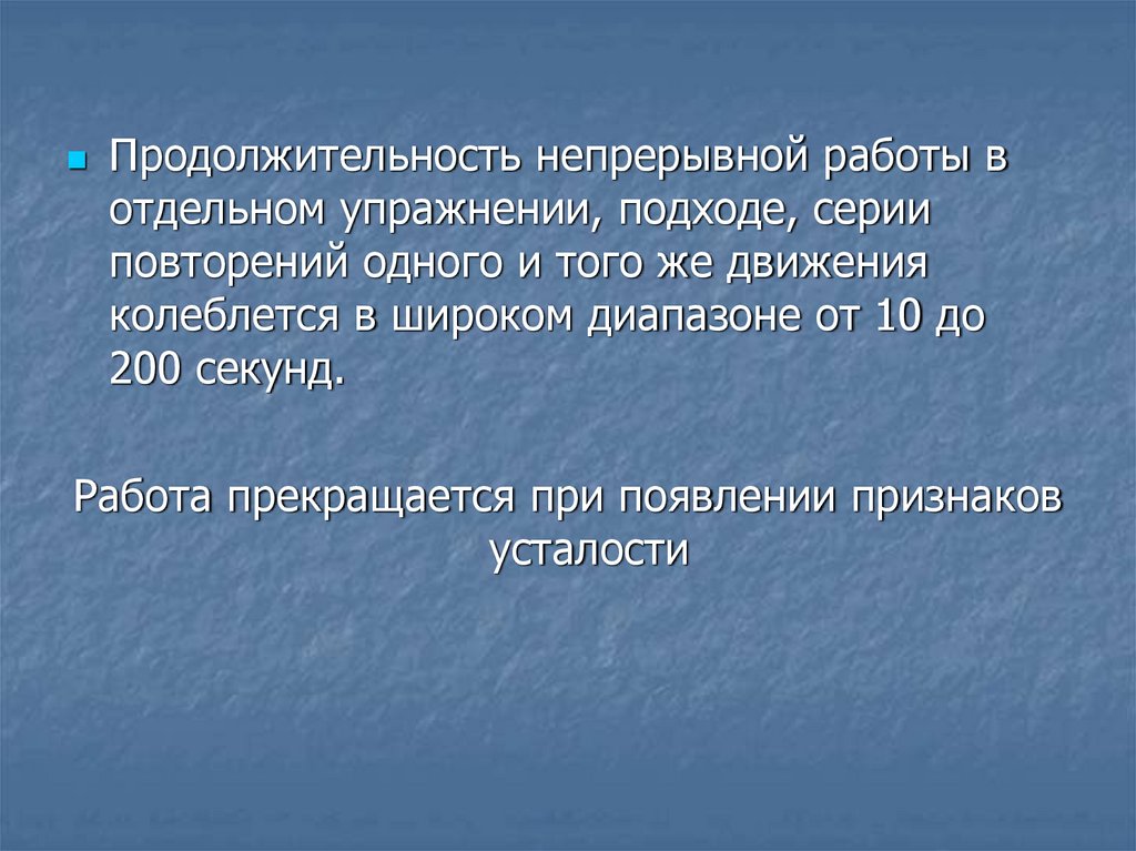 Продолжительность непрерывной работы вотдельном упражнении, подходе, серии