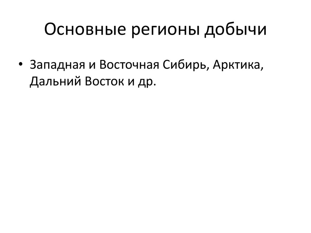 Основные регионы добычи• Западная и Восточная Сибирь, Арктика,