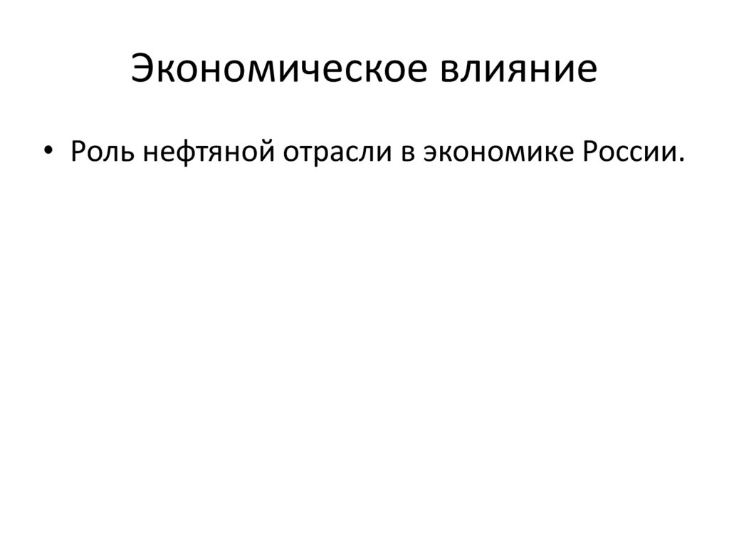 Экономическое влияние• Роль нефтяной отрасли в экономике России.