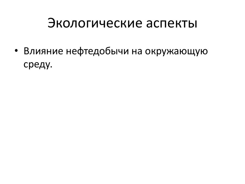 Экологические аспекты• Влияние нефтедобычи на окружающую