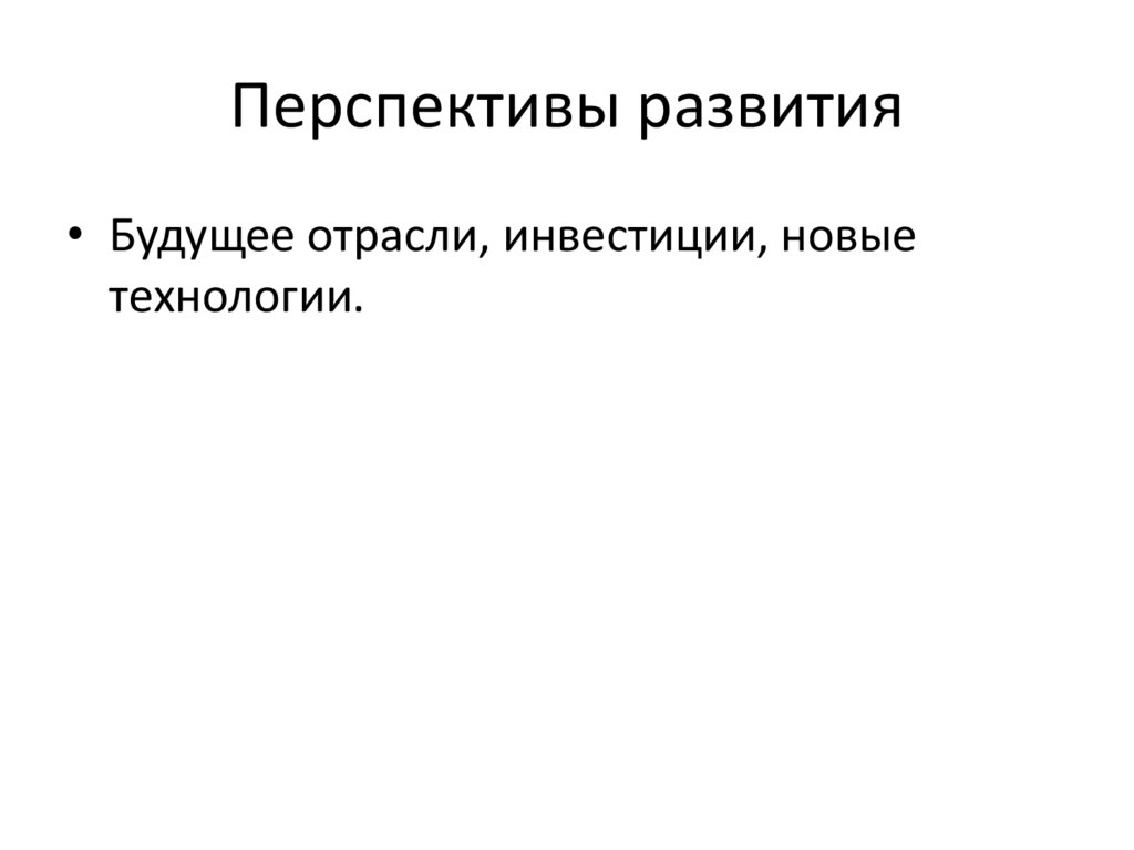 Перспективы развития• Будущее отрасли, инвестиции, новые