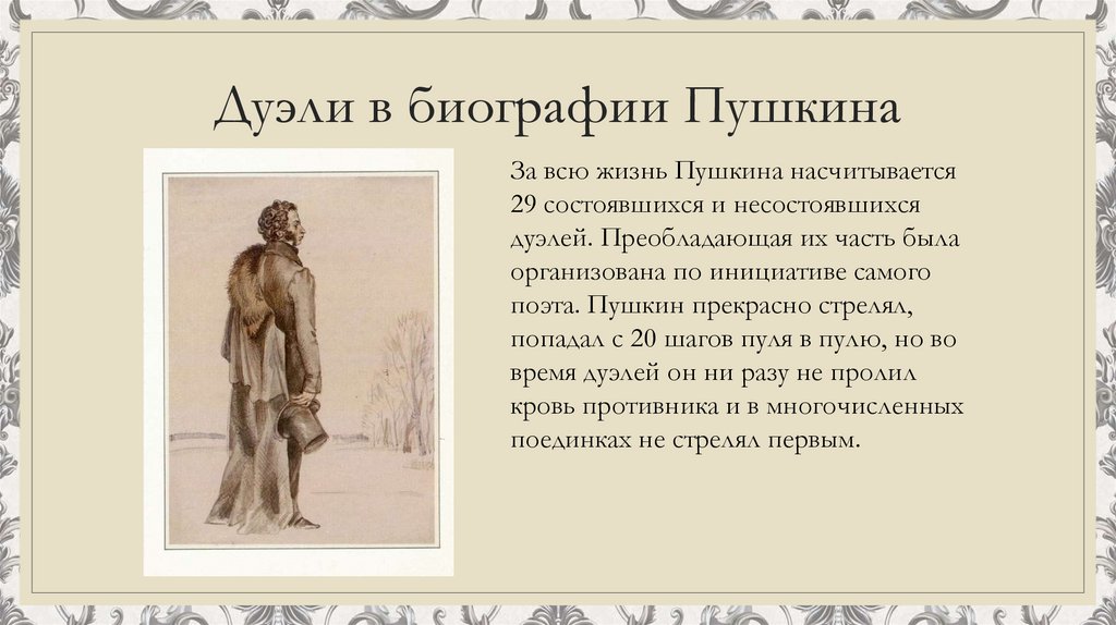 2)Собрать информацию о дуэлях в биографии А. С. Пушкина