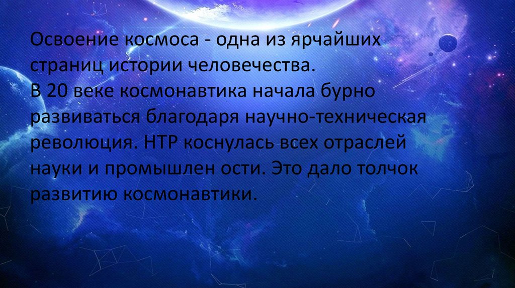 Освоение космоса - одна из ярчайшихстраниц истории человечества.