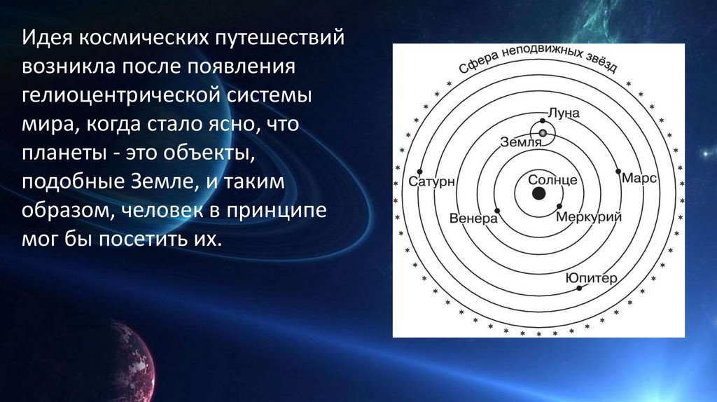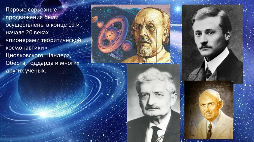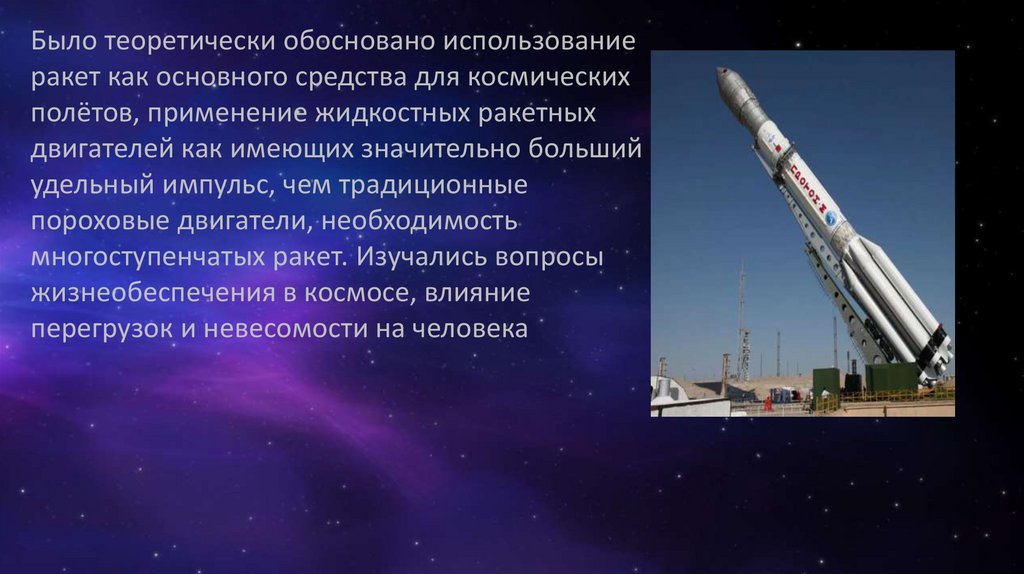 Было теоретически обосновано использованиеракет как основного средства для космических