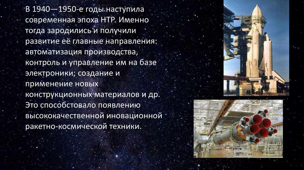 В 1940—1950-е годы наступиласовременная эпоха НТР. Именно