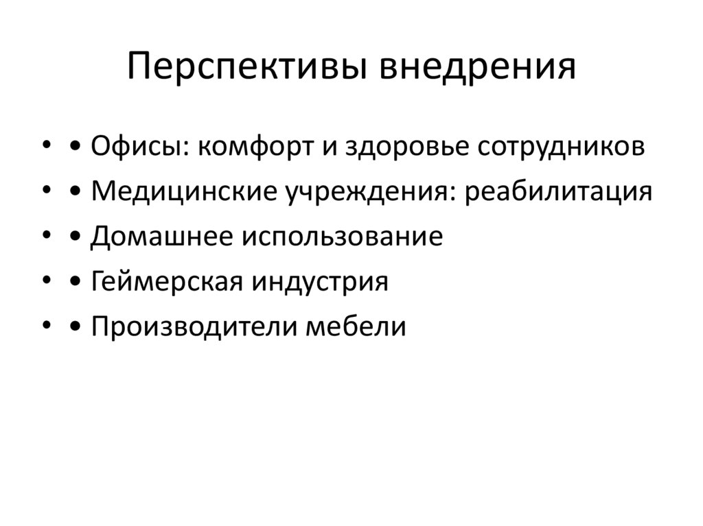 Перспективы внедрения• • Офисы: комфорт и здоровье сотрудников