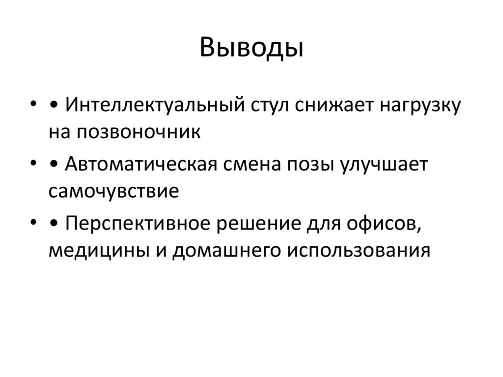 Выводы• • Интеллектуальный стул снижает нагрузку