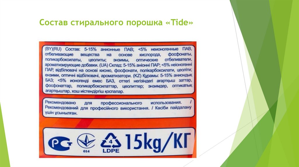 Состав стирального порошка «Tide»12.