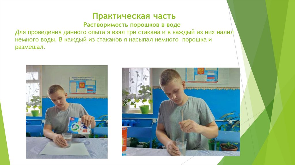 Практическая частьРастворимость порошков в воде