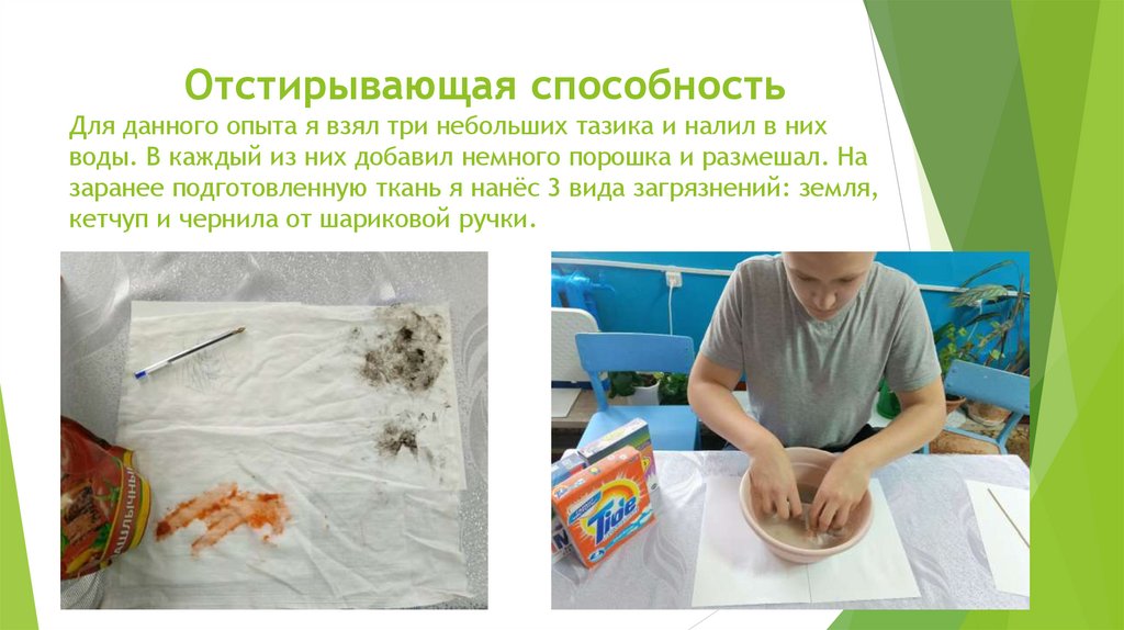 Экспериментально проверить отстирывающую способность