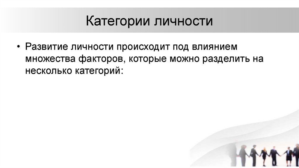 Категории личности• Развитие личности происходит под влиянием