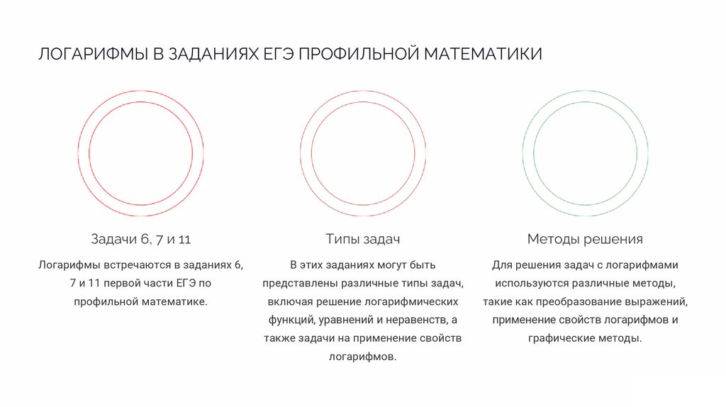 ЛОГАРИФМЫ В ЗАДАНИЯХ ЕГЭ ПРОФИЛЬНОЙ МАТЕМАТИКИЗадачи 6, 7 и 11