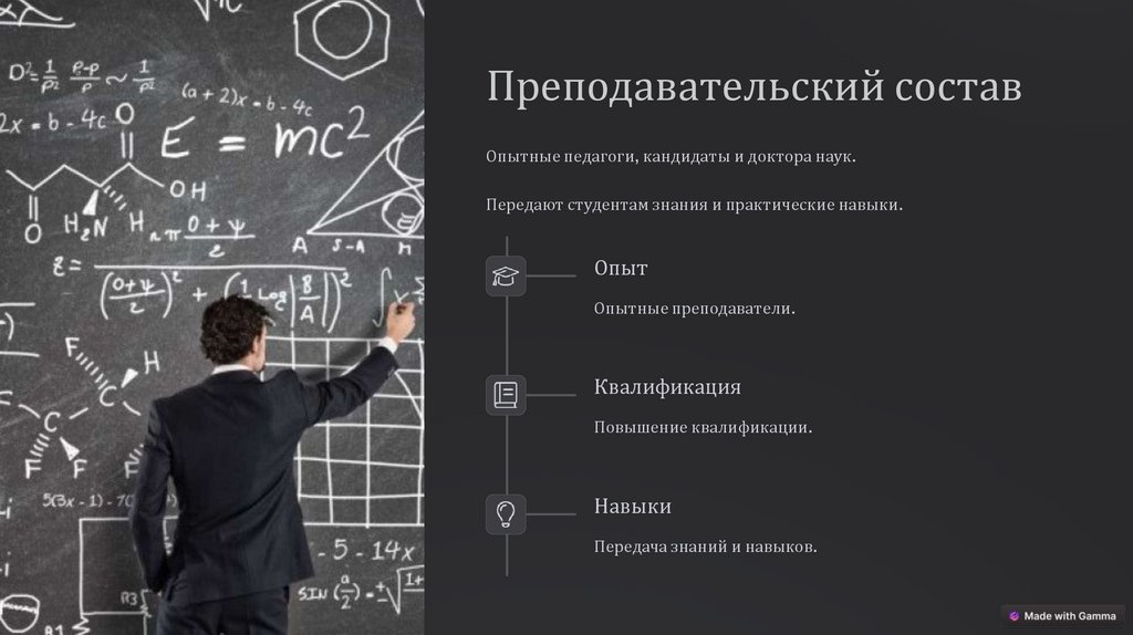 Преподавательский составОпытные педагоги, кандидаты и доктора наук.