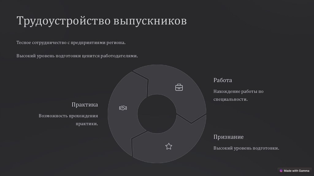 Трудоустройство выпускниковТесное сотрудничество с предприятиями региона.