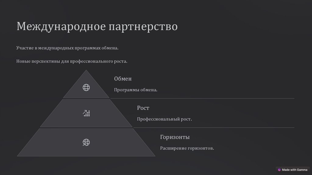 Международное партнерствоУчастие в международных программах обмена.