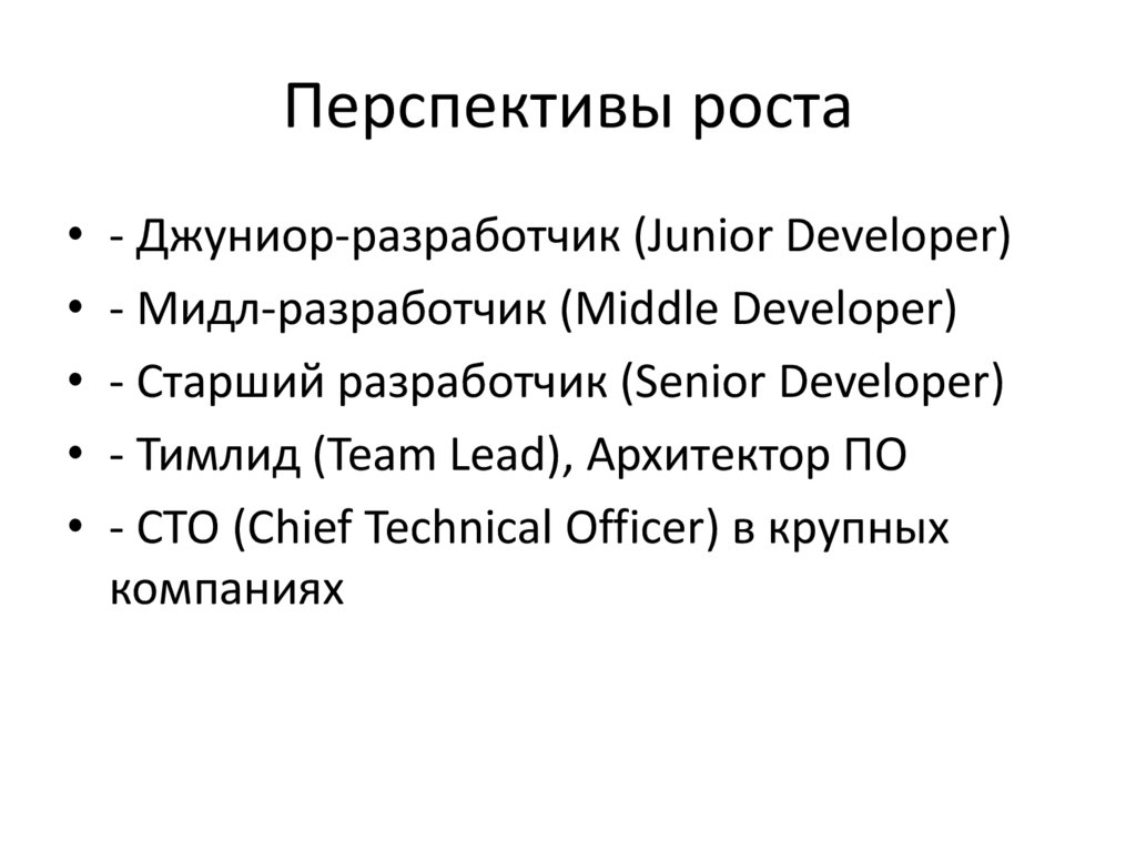 Перспективы роста• - Джуниор-разработчик (Junior Developer)