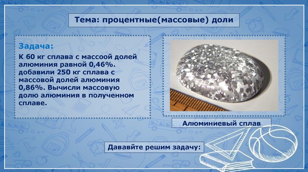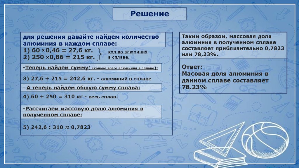 3) 27,6 + 215 = 242,6 кг. - алюминий в сплаве