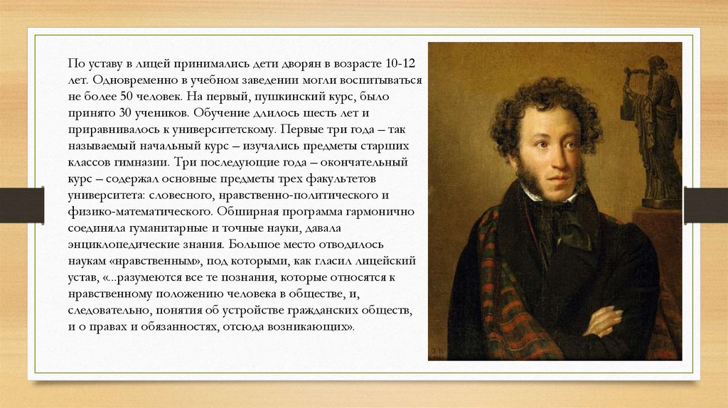 По уставу в лицей принимались дети дворян в возрасте 10-12лет. Одновременно в учебном заведении могли воспитываться