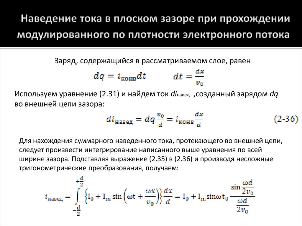 Окончательно уравнение тока, наведенного модулированным электроннымпотоком, приобретает вид