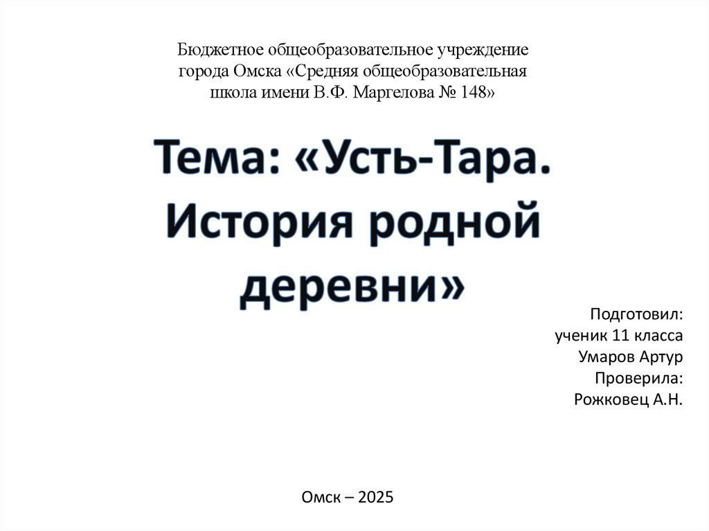 ЗаключениеТаким образом, я узнал , что Усть-Тара – старинная деревня, начало которой еще было