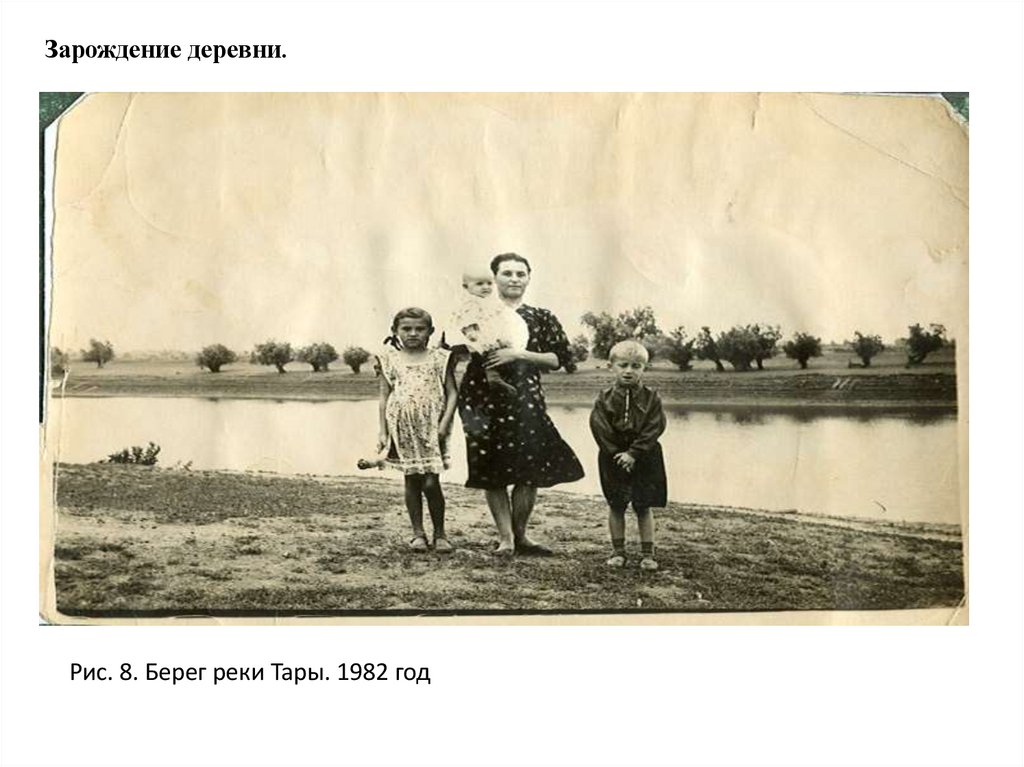 Зарождение деревни.Рис. 8. Берег реки Тары. 1982 год