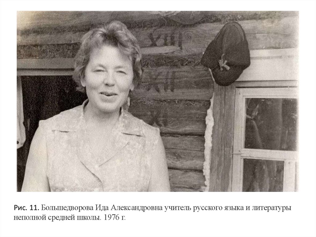 Рис. 11. Большедворова Ида Александровна учитель русского языка и литературынеполной средней школы. 1976 г.
