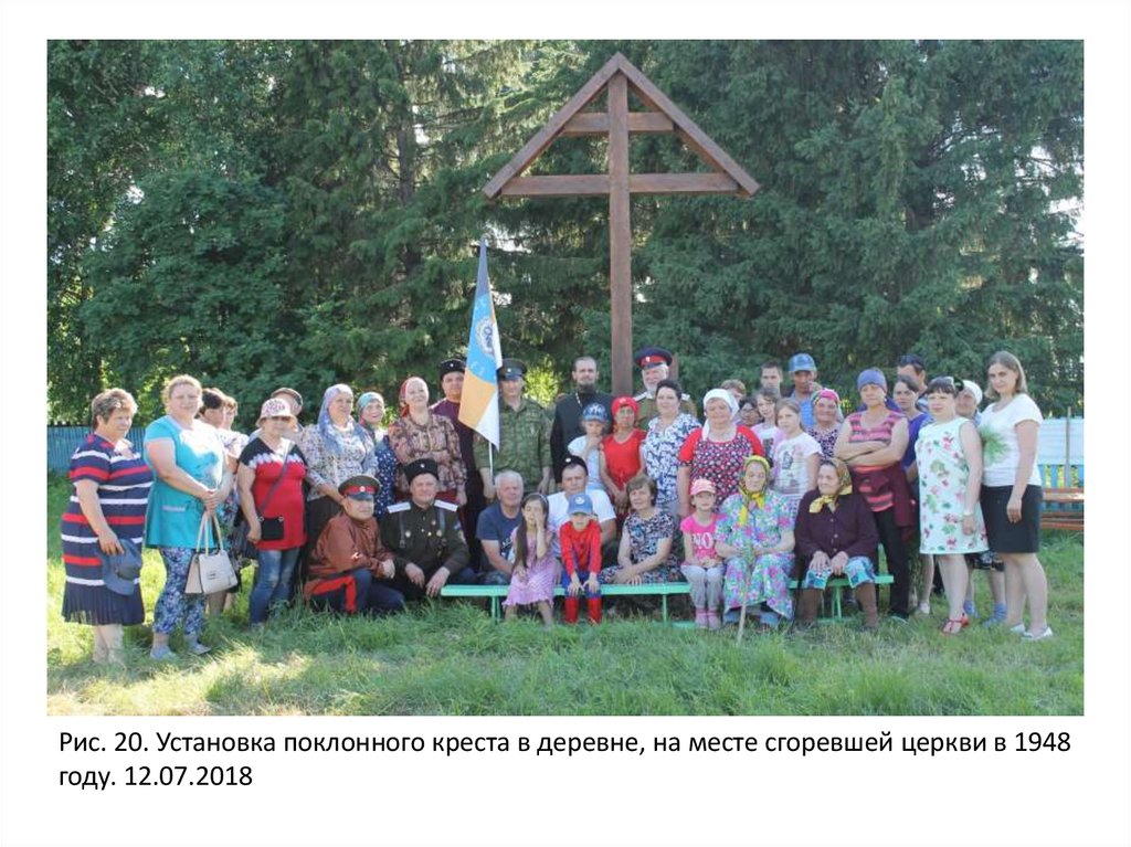 Рис. 20. Установка поклонного креста в деревне, на месте сгоревшей церкви в 1948году. 12.07.2018