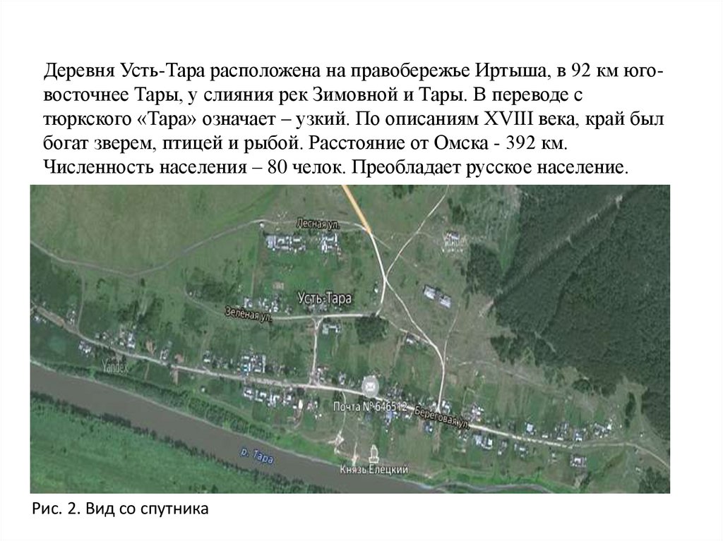 2) Выяснить результаты исследований археологов деревни Усть-Тара
