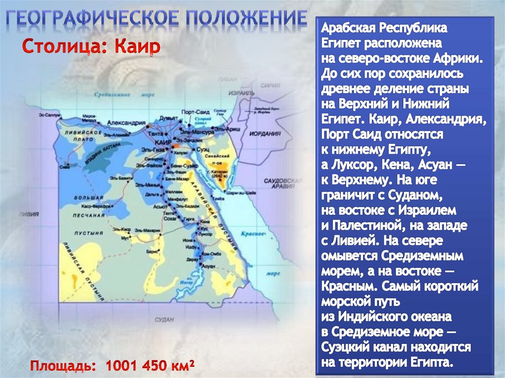 Египет. Географическое положение Египта и его столица