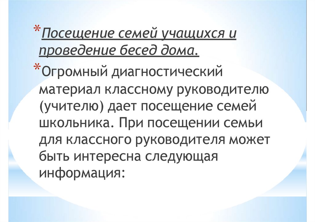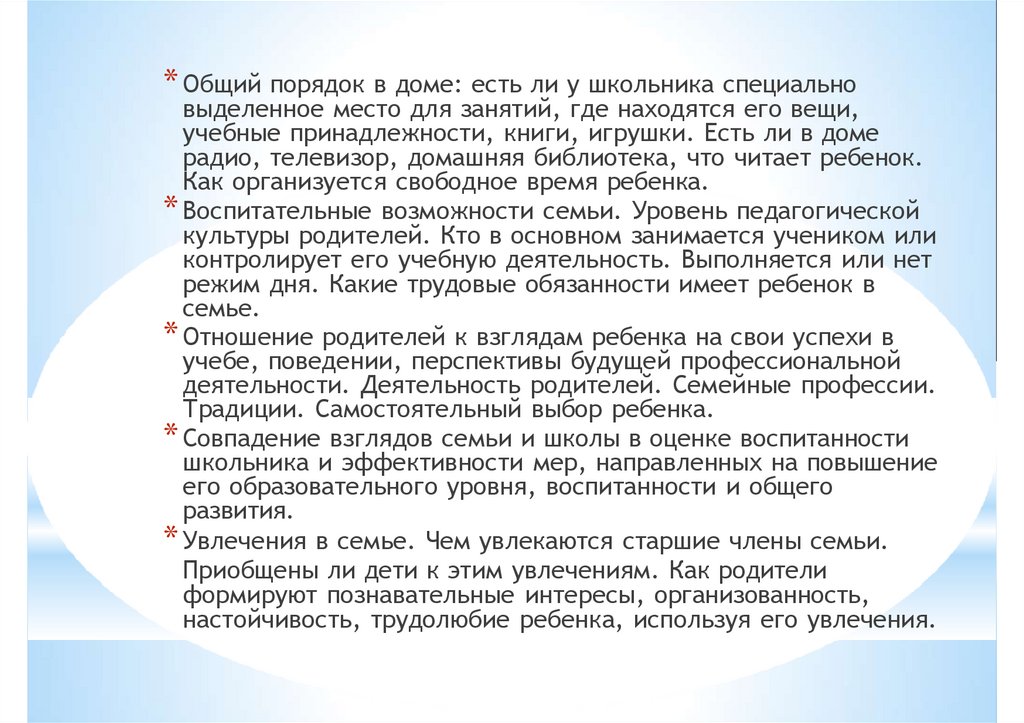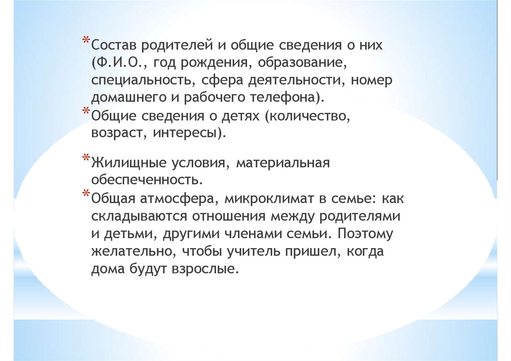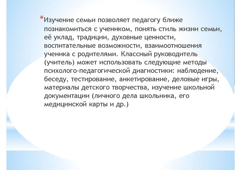 *Изучение семьи позволяет педагогу ближепознакомиться с учеником, понять стиль жизни семьи,