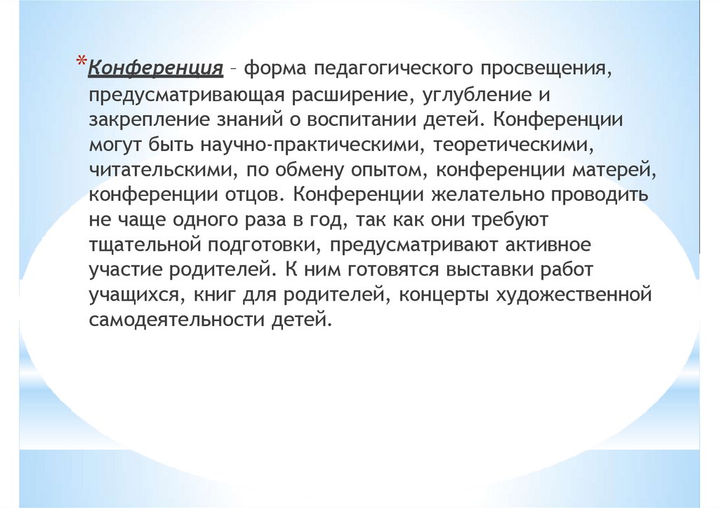 *Конференция – форма педагогического просвещения,предусматривающая расширение, углубление и