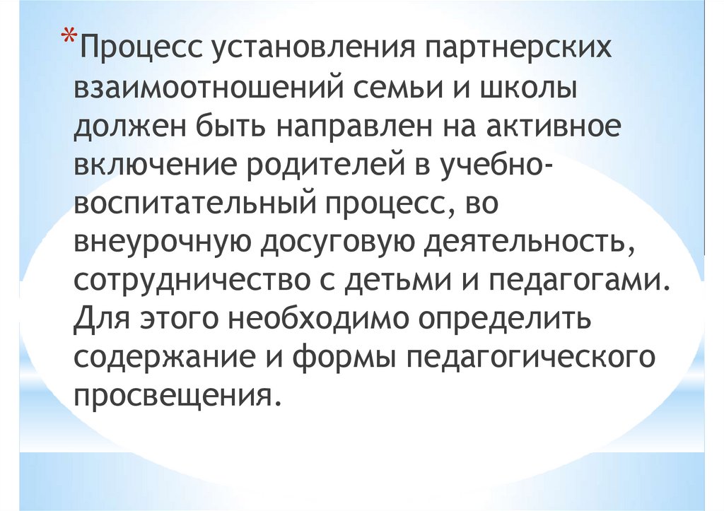 *Процесс установления партнерскихвзаимоотношений семьи и школы