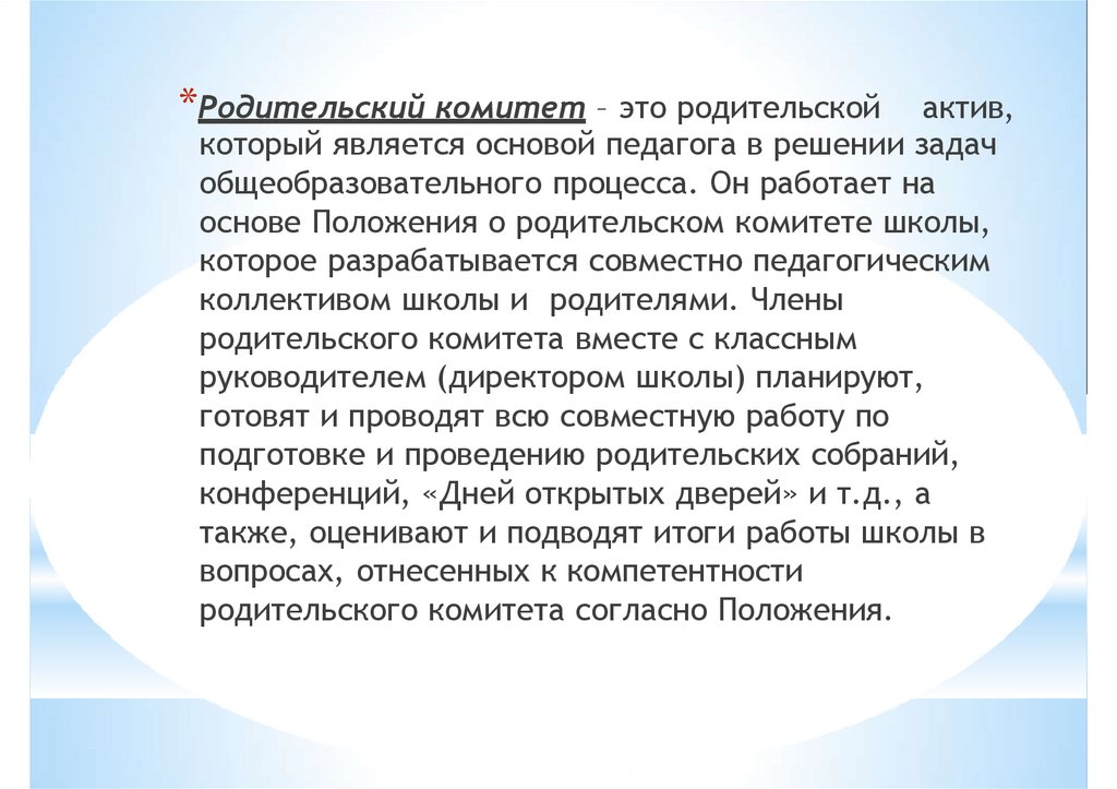 *Создание условий для обеспечения прав родителейна участие в управлении образовательным