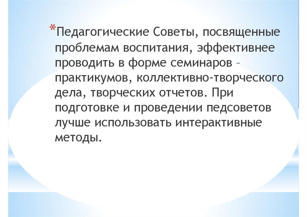 *Педагогические Советы, посвященныепроблемам воспитания, эффективнее