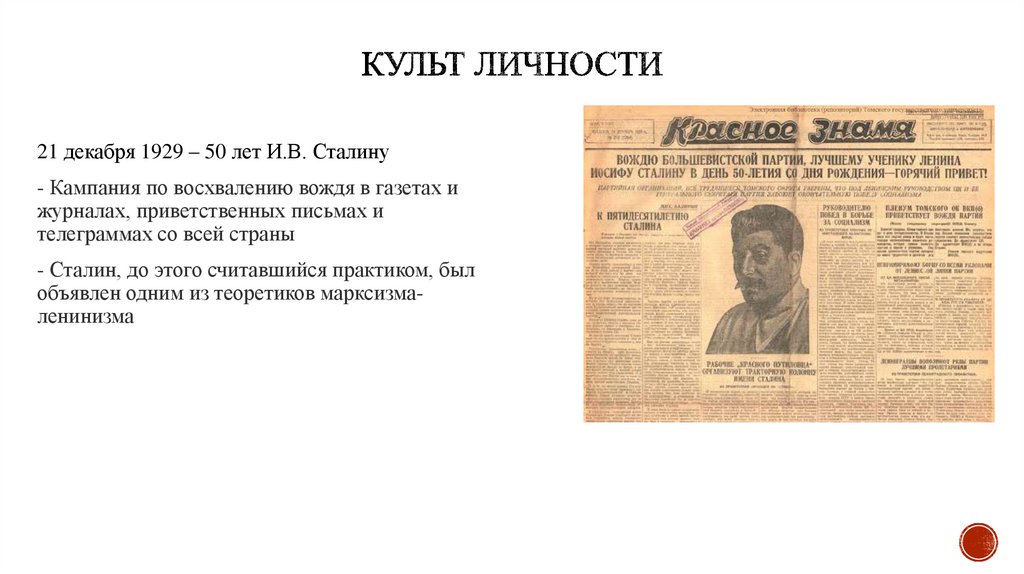 21 декабря 1929 – 50 лет И.В. Сталину- Кампания по восхвалению вождя в газетах и