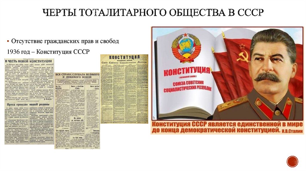 Отсутствие гражданских прав и свобод1936 год – Конституция СССР