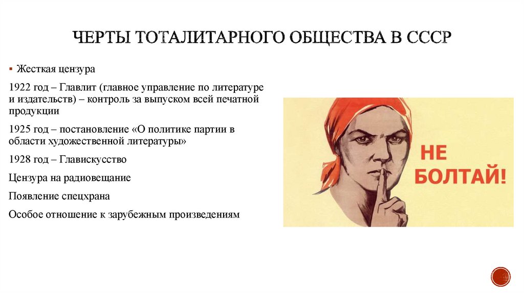 Жесткая цензура1922 год – Главлит (главное управление по литературе
