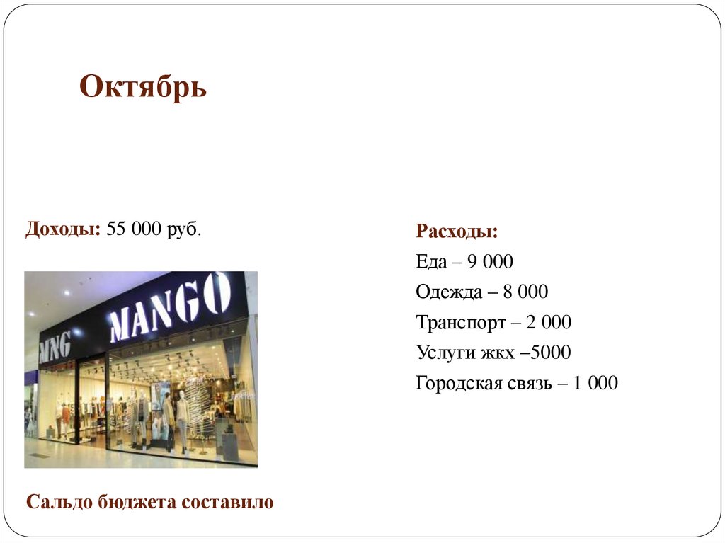 ОктябрьДоходы: 55 000 руб.