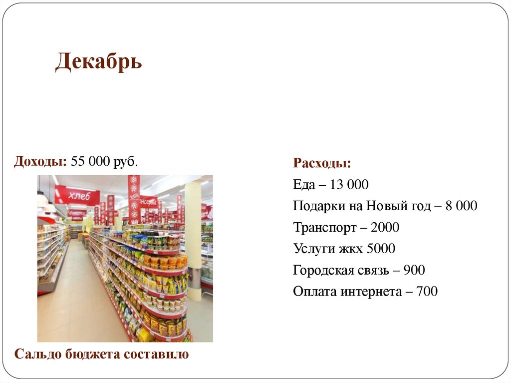 ДекабрьДоходы: 55 000 руб.
