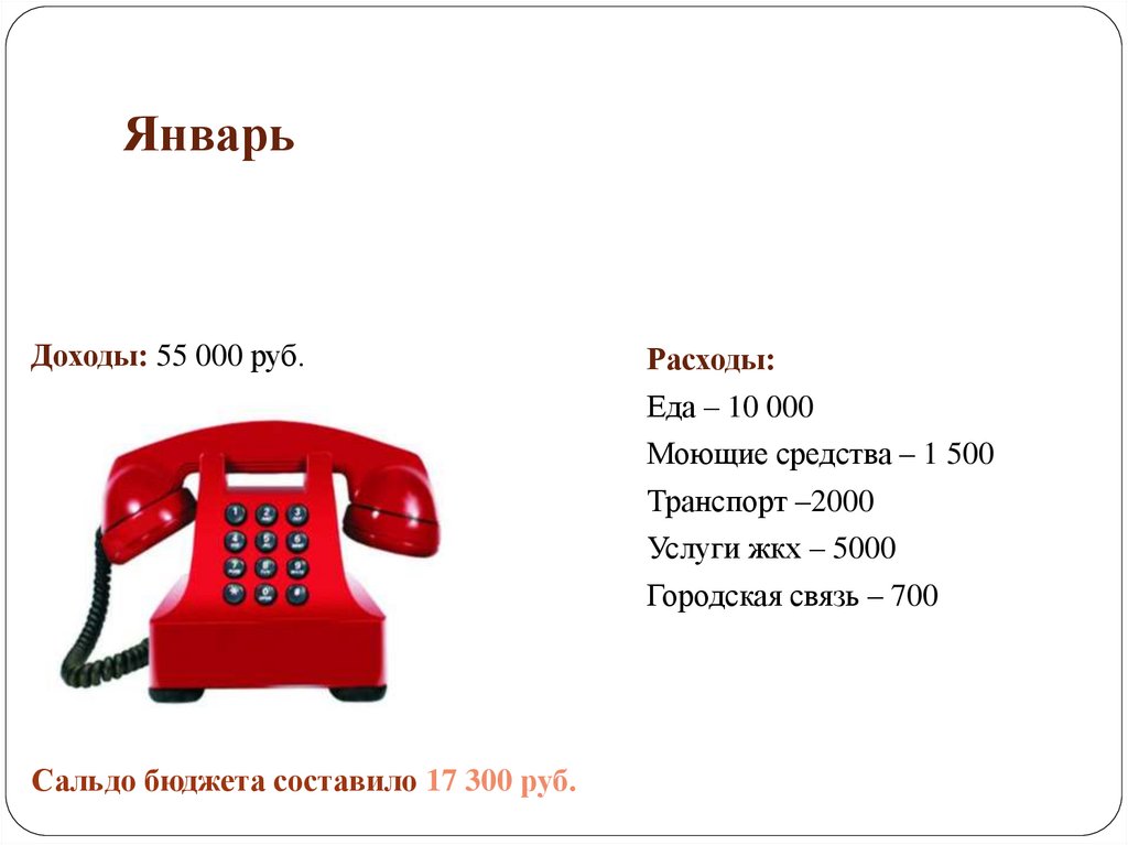 ЯнварьДоходы: 55 000 руб.