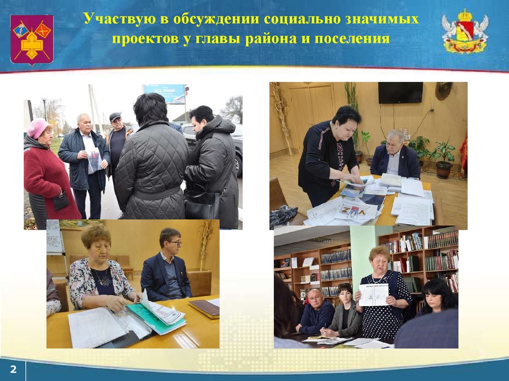 Участвую в обсуждении социально значимыхпроектов у главы района и поселения