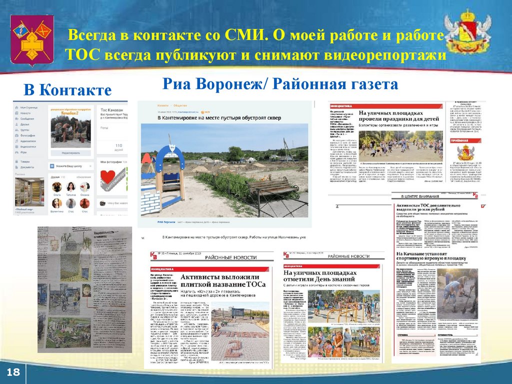 Всегда в контакте со СМИ. О моей работе и работеТОС всегда публикуют и снимают видеорепортажи