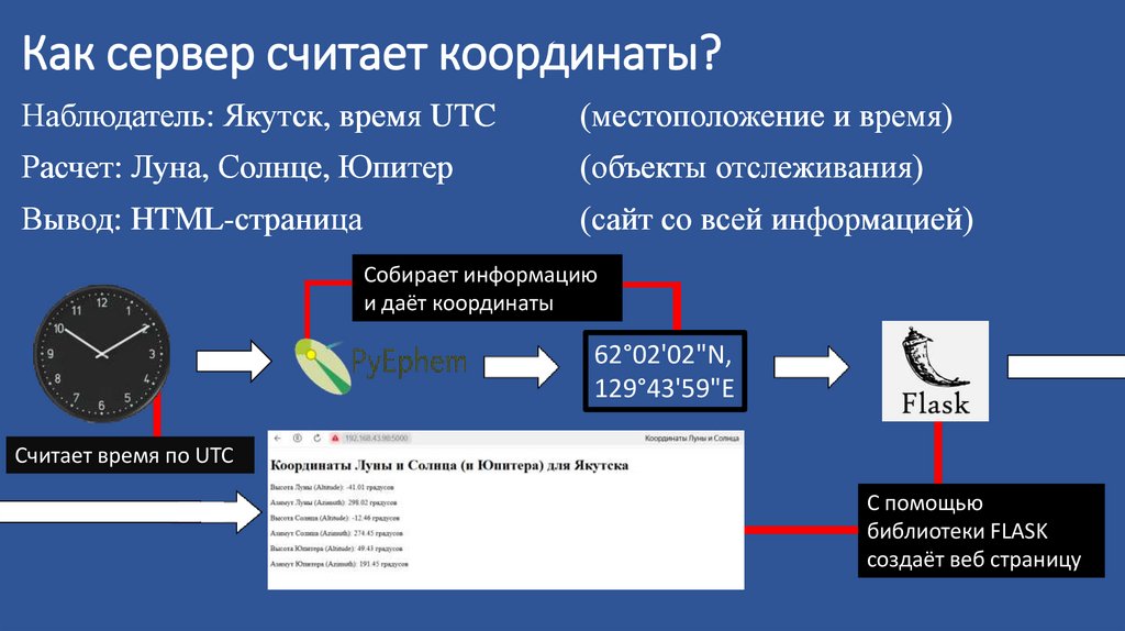Как сервер считает координаты?Наблюдатель: Якутск, время UTC