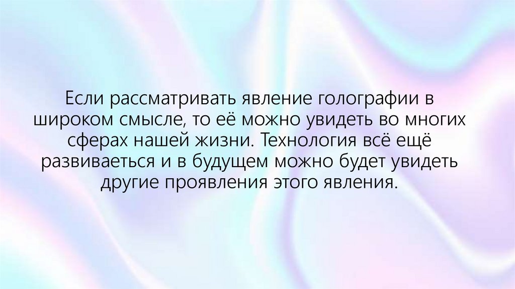 Если рассматривать явление голографии вшироком смысле, то её можно увидеть во многих
