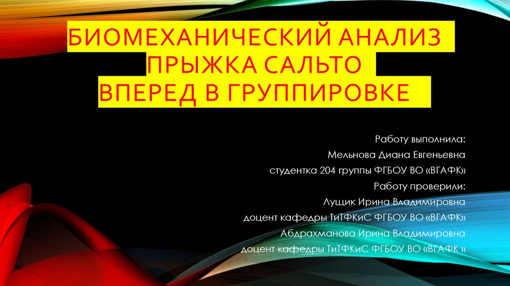 БИОМЕХАНИЧЕСКИЙ АНАЛИЗПРЫЖКА САЛЬТО