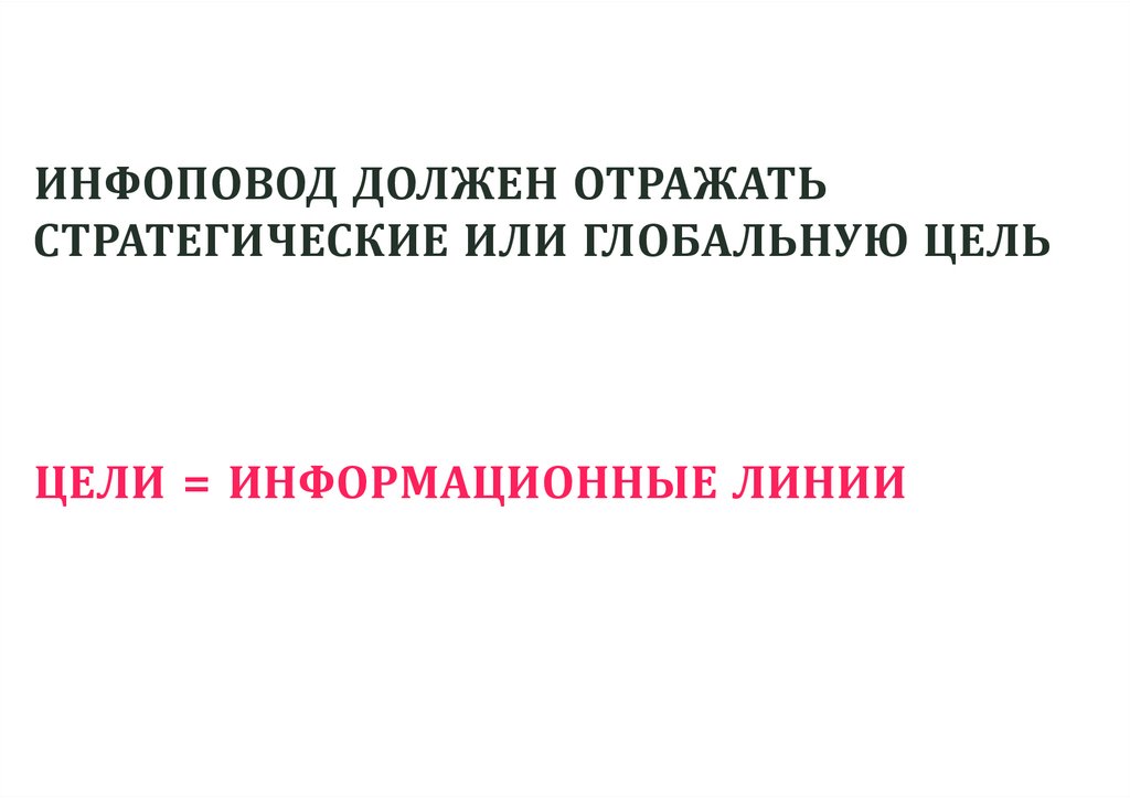 ИНФОПОВОД ДОЛЖЕН ОТРАЖАТЬСТРАТЕГИЧЕСКИЕ ИЛИ ГЛОБАЛЬНУЮ ЦЕЛЬ
