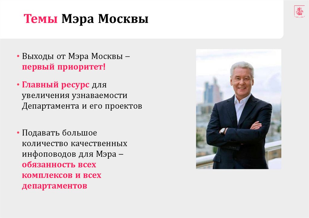 Темы Мэра Москвы• Выходы от Мэра Москвы –