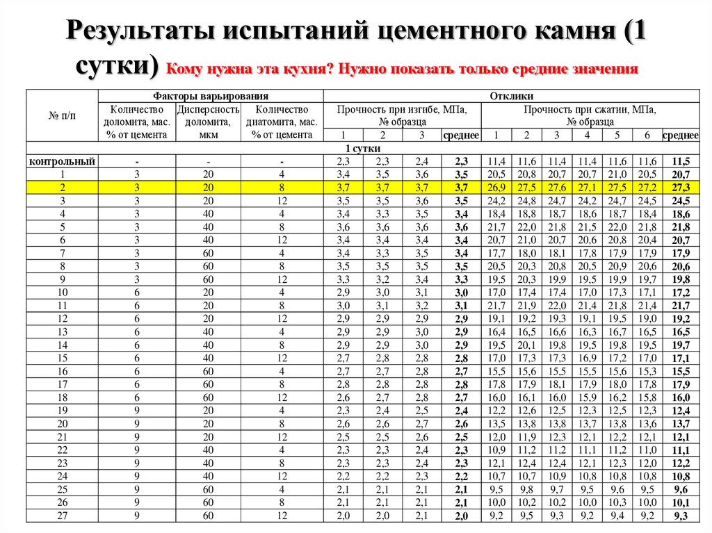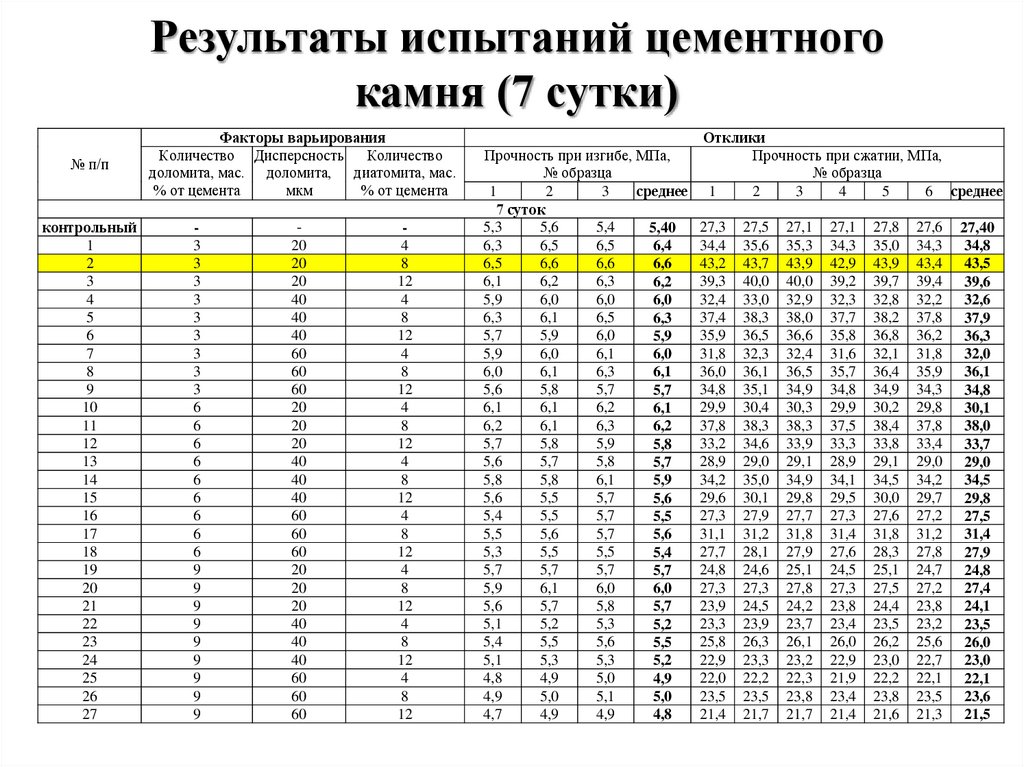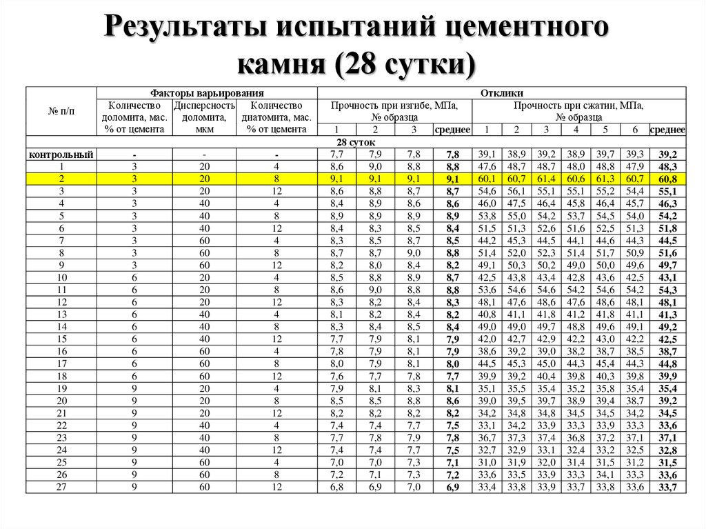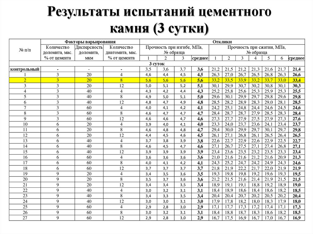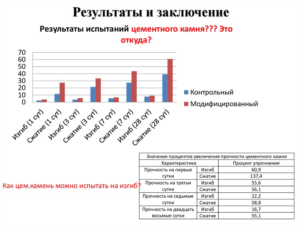 Результаты и заключениеРезультаты испытаний цементного камня??? Это