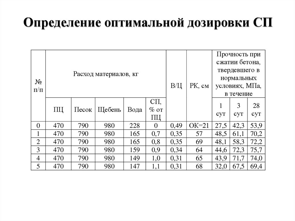 химических добавок на подвижность бетонной смеси и